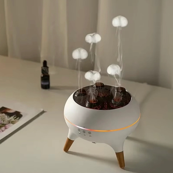 Der Quallenmodus ahmt die weiche, rhythmische Bewegung einer Qualle nach und erzeugt einen beruhigenden Nebel, der ideal für Entspannung oder Schlaf ist.