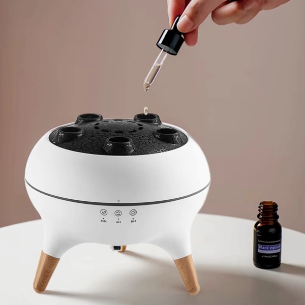 Geben Sie ein paar Tropfen Ihres Lieblings-Ätherischen Öls hinzu, um die Atmosphäre zu bereichern und ein persönliches, duftendes Erlebnis zu schaffen, das zu Ihrer Stimmung passt.
