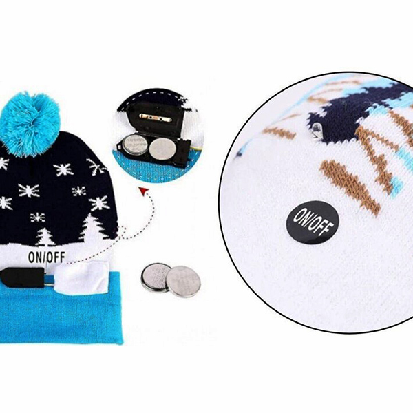 Das Einschalten der Magie ist ein Kinderspiel! Der Ein/Aus-Schalter ist geschickt in der Naht versteckt. Einfach drücken, um das Licht einzuschalten, und schon kann der Festtagsspaß beginnen.