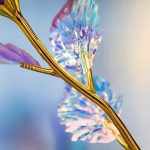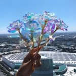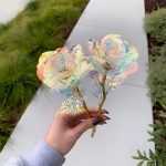 Jede Rose ist mit einer irisierenden, holografischen Beschichtung versehen, die im Licht wunderschön schimmert und ein galaxienähnliches Funkeln erzeugt, das einfach faszinierend ist.