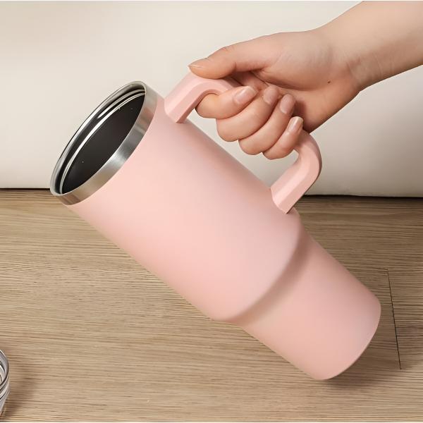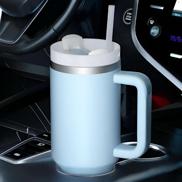 Egal, ob Sie ein Wochenendabenteuer planen oder nur zur Arbeit fahren, dieser Becher passt perfekt in alle standardmäßigen Auto-Getränkehalter und ist dank des stabilen Griffs leicht zu tragen.